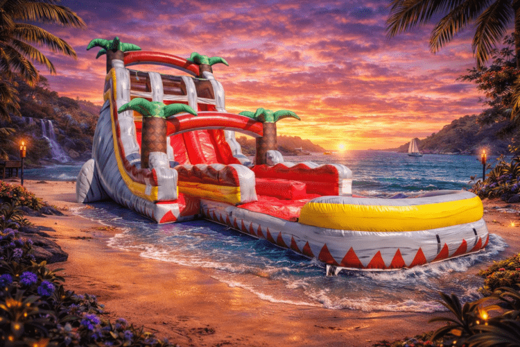 Get ready for an exhilarating splash with the 20 ft Fire Island wet/dry slide! This inflatable thrill ride towers above, offering a fiery adventure that can be enjoyed with or without water. Dive into a refreshing plunge on a hot day or keep it dry for fast-paced fun. Perfect for parties, it delivers endless excitement, with bold colors and a steep descent that guarantees a heart-pounding rush. Whether you're hosting a summer bash or just want to set up an epic play day, this slide transforms any gathering into an unforgettable event.